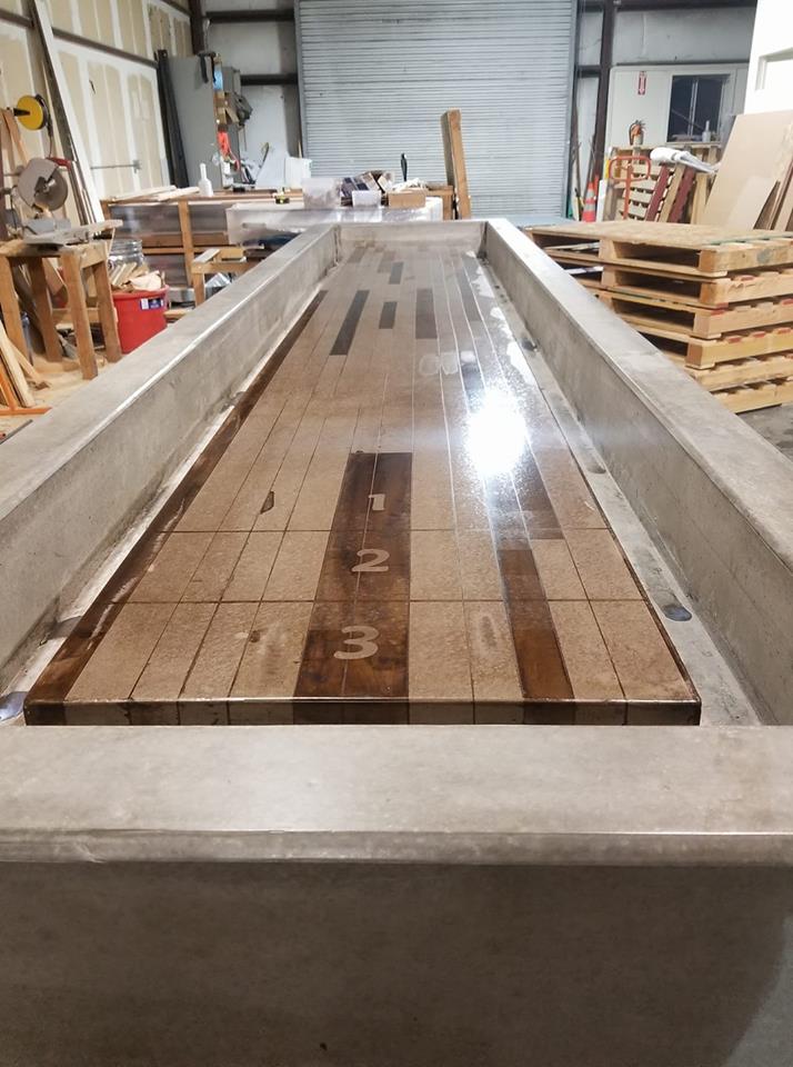 Models: Concrete Shuffleboard Table and the aluminum shuffleboard table