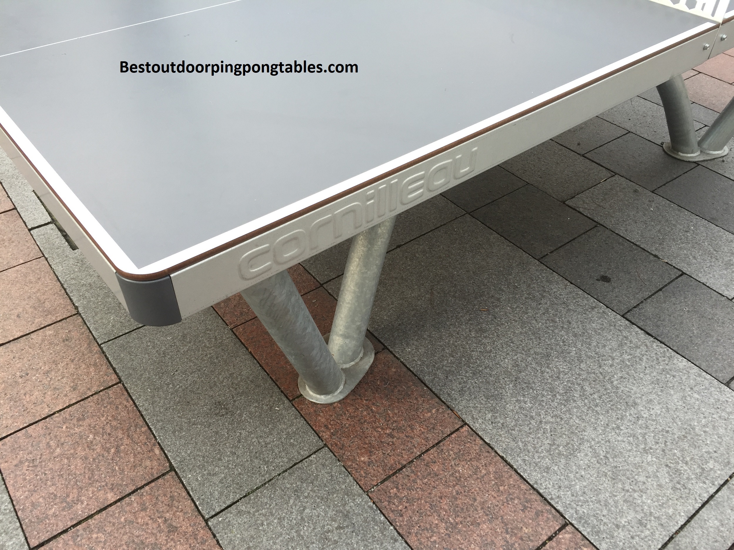 Frame/Design – The Cornilleau Park Outdoor table tennis table is supported by a steel frame that is 100% recyclable. The frame features 3 ½ inch galvanized steel supports that have a slight arch to them. The design work is very beautiful and the color is a neutral steel/slate. The frame for the tabletop is 3 inches by 1 ¾ inch with corner padding. The net is galvanized steel as well and features curved corners. You can put in a traditional net if you wish.