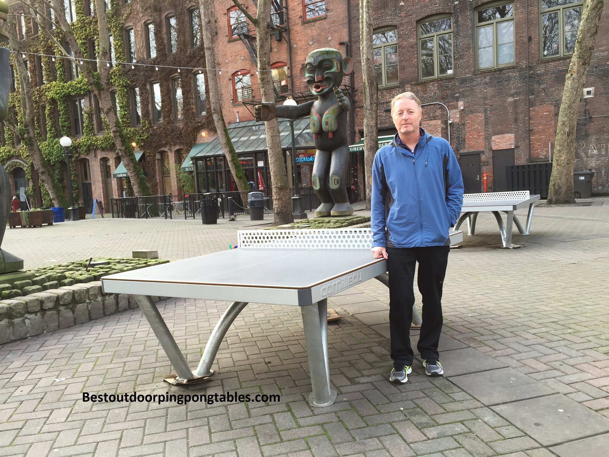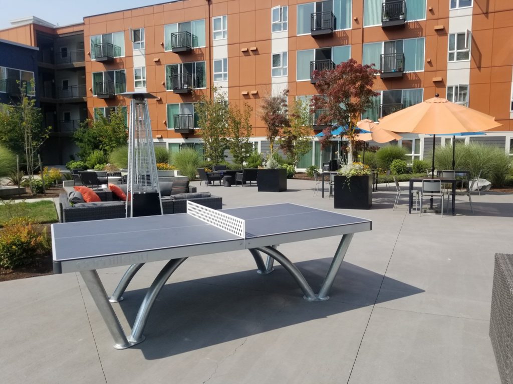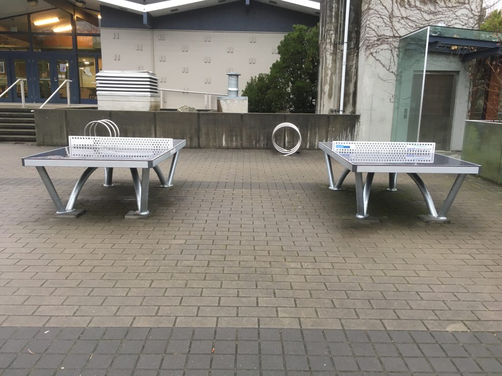 Disadvantages – The price is always something you’ll need to consider. At almost $5000, the table is definitely not recreational by any means. The Cornilleau Park Outdoor is designed for places like city parks or resorts. The table will need to be secured to the ground, either by screwing it into the ground or with sand ballasts to weigh it down. Therefore, the table is not movable. It’s pretty much fixed in place once it gets installed. Make sure you are 100% certain that wherever you put it that is where it will remain for many years. There are no leg levelers on this model and you can see in our photos that the city of Seattle has placed cardboard below the frame in order to level the table. The metal net (as mentioned earlier) is not forgiving and ricochets ping pong balls way off the table.