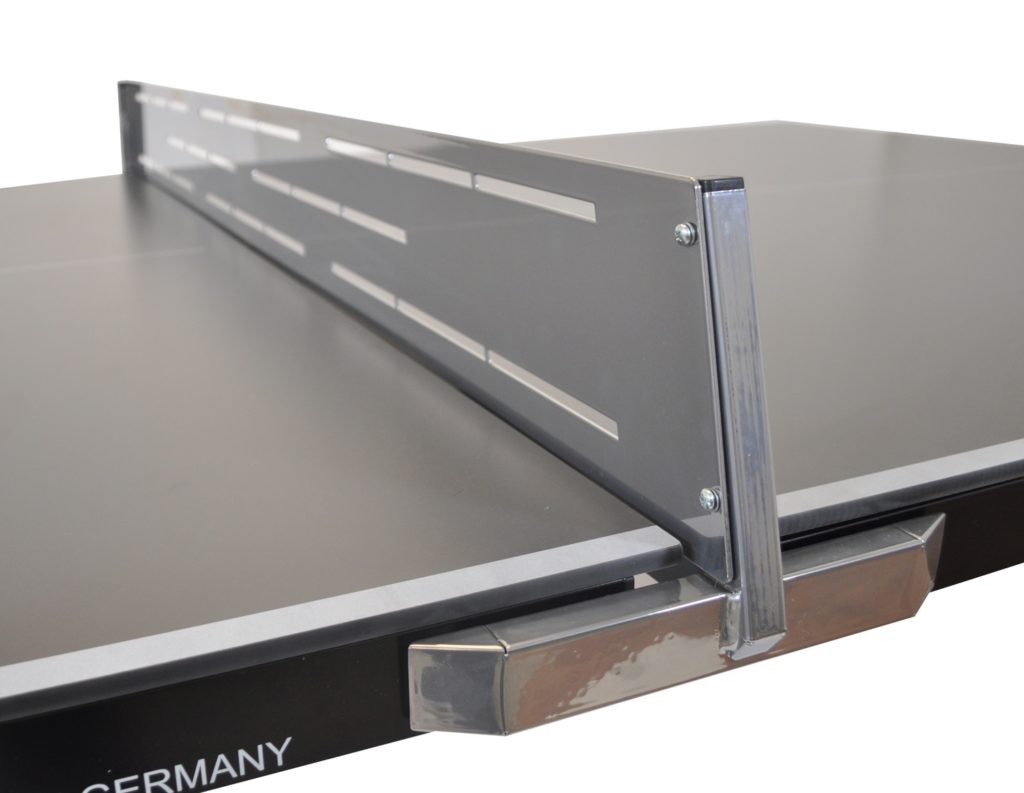 Frame/Design – The setup weight is 280 lbs. – so this table is sturdy and stable and built to withstand rough housing. Only a few other stationary tables offer more stability (Cornilleau Park or concrete ping pong table). The 10mm melamine tabletop comes with a 10 year warranty and it’s the material that more ping pong table manufacturers are designing tables with. Cornilleau has been doing it for years, but Kettler has been slow to market with this style top. The outer edges are protected and supported by a 2″ steel apron. The 4″ rectangle galvanized steel legs are ideal to hold up in all weather climates and not rust. You can anchor the legs to the ground for further stability if you want. With the table leg design, you can use the table as a dining table too because there is room for chairs to fit underneath. The net and post system is made with galvanized steel and designed to be permanent. The tabletop at 10 mm is 3mm thicker than the Cornilleau 510 which is our most popular selling stationary ping pong table. ORDER HERE