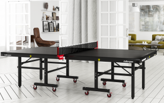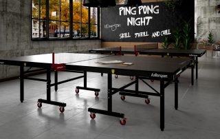 Playability – The tabletop is manufactured with 25 millimeter thick medium density fiberboard (MDF). The process of repeat rolling coating (16 layers) gives the top a smooth, yet adherent surface for the ball to bounce on. The finish not only protects the playing surface but it also helps to reduce ball marks. You get 4 inch ball bearing wheels so moving the table into the perfect spot is easy. Adjustable feet also allow you to get that level playing surface that is required for a quality game of ping pong. Killerspin has thought of everything on the MyT10 BlackPocket. At around $1000, the ping pong table is tournament ready for your club, bar, or neighborhood party. We love the sleek black lines and black frame.