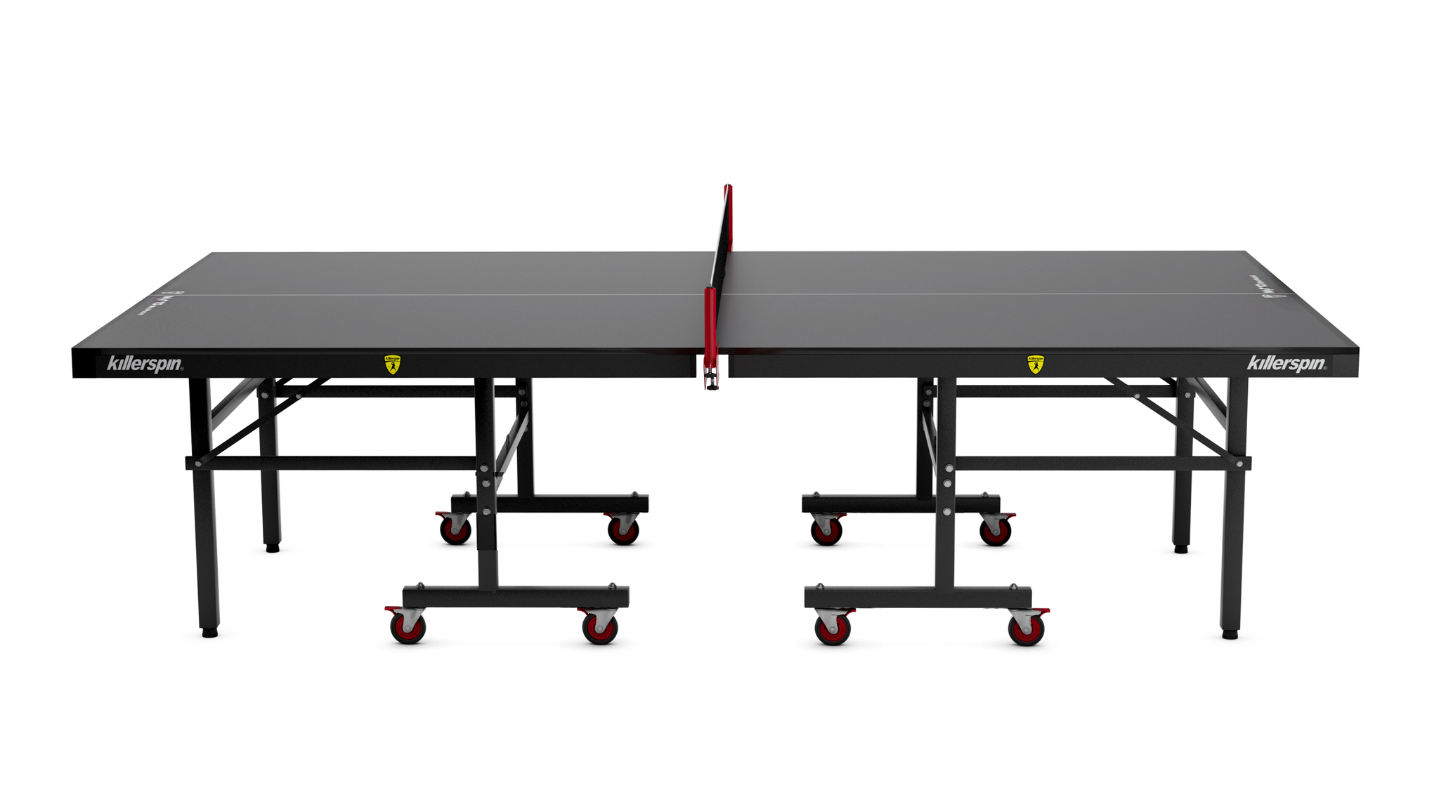 Frame/Design – As we mentioned above, the MyT10 BlackPocket was designed for the high end player, but with a price tag that families can still afford. The thick tabletop means the weight of the table is over 250 lbs. The frame is thicker and heavier duty on the MyT10 than on the lesser MyT7 or MyT5 models. You get the feeling the frame could withstand almost anything. The legs still offer the adjustable feet and the storage pockets for balls and paddles are always appreciated. Did we mention the red and black clip-on net? Killerspin did an artistic job on this table with the colors and design. It will be the conversation piece at any party. We’ve played on these at the Killerspin House in Chicago and in our warehouse. For less than $1000, we can’t say enough about the table tennis table.