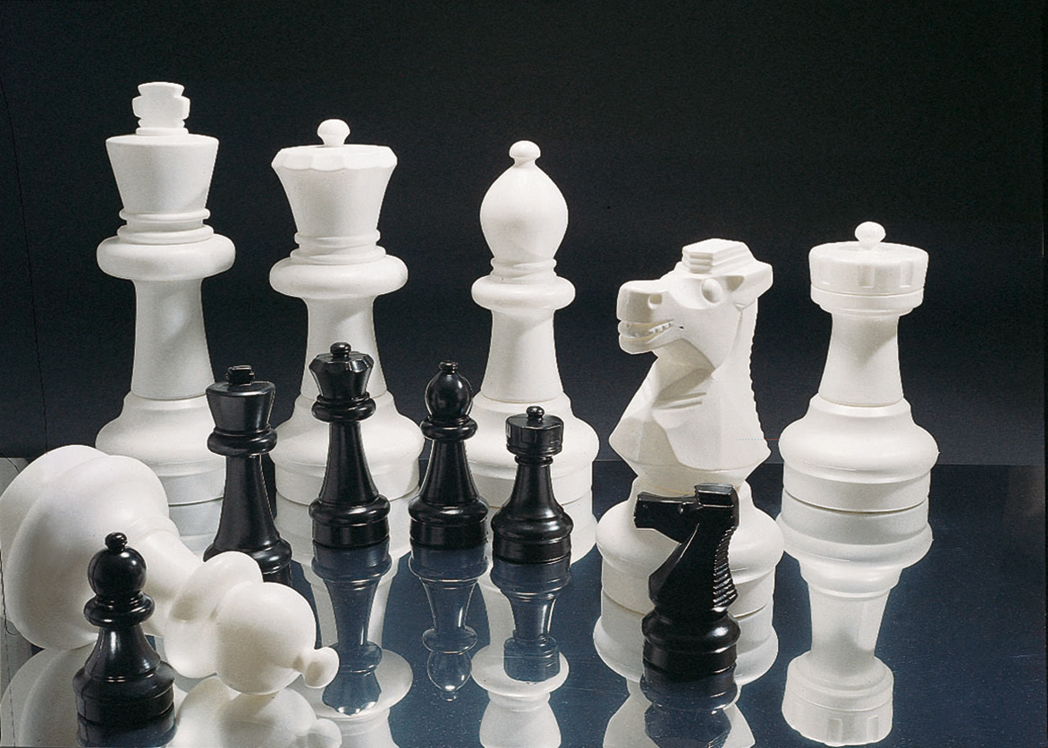 - Polyethylene resin game pieces; 19″(pawn)to 25″(king)