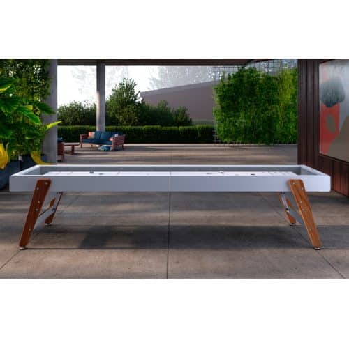 Ping pong tables provide a great way for you to bond with family at large gatherings, connect with coworkers during breaks, all while stimulating your mental alertness. RS Barcelona’s You and Me Ping Pong table can be used as a dining table or a conference table as there is a side-drawer to place the balls, paddles and net. The RS design features a standard wooden oak top with a white accent. Regulation size table at 9 feet by 5 feet. Comes in either white or black frame.