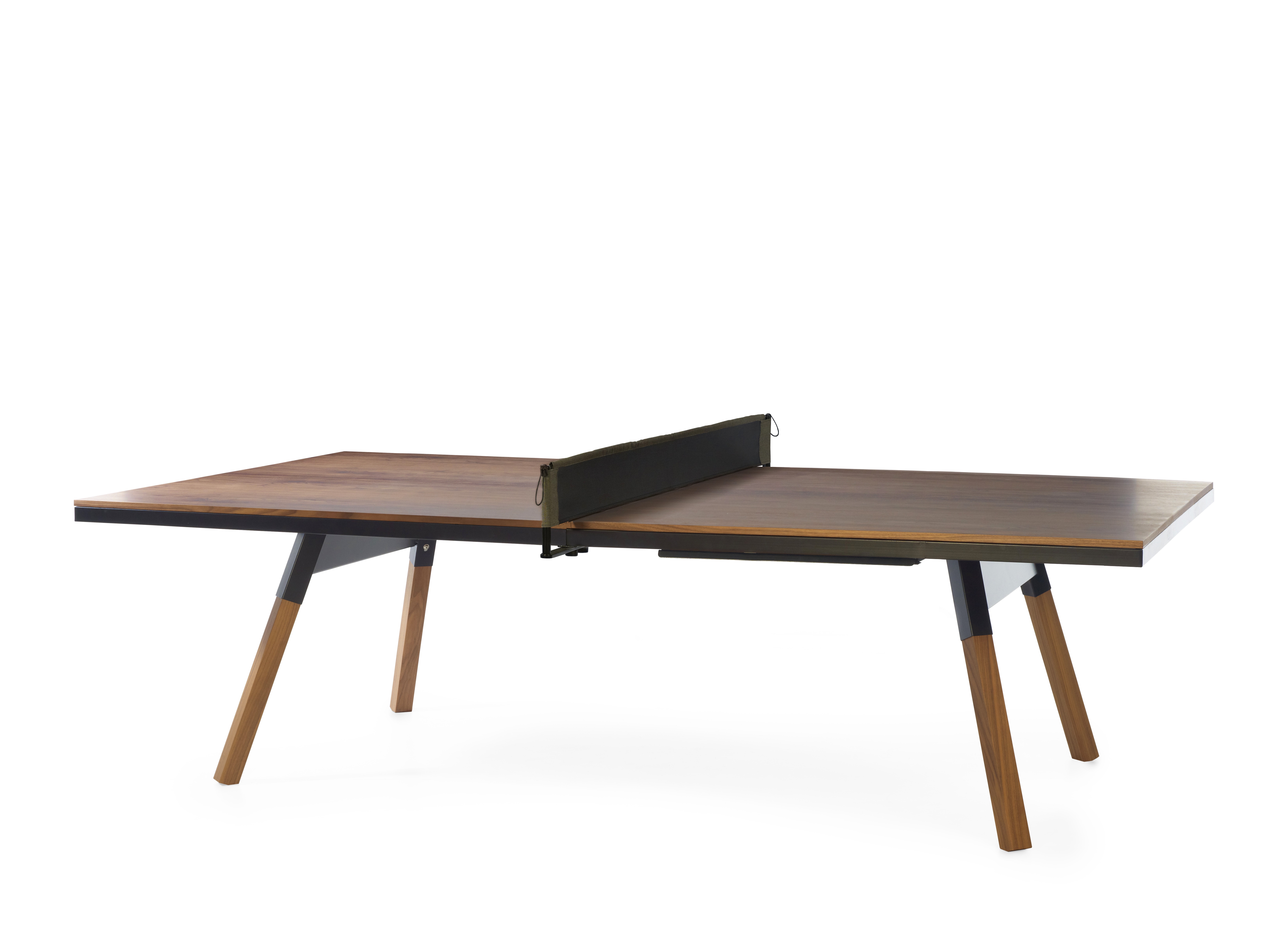 Looking for that perfect table in the office? One that can be used for work and play. The RS Barcelona You and Me Walnut ping pong table is ideal for use as a work table as well as a wooden ping pong table. The beautiful walnut top is supported by 4 individual legs that make for a stylish piece of furniture. The table is meant for indoor use only and is standard size at 9 feet long by 5 feet wide. White glove delivery service (room of choice) and assembly is available on this table for $500.