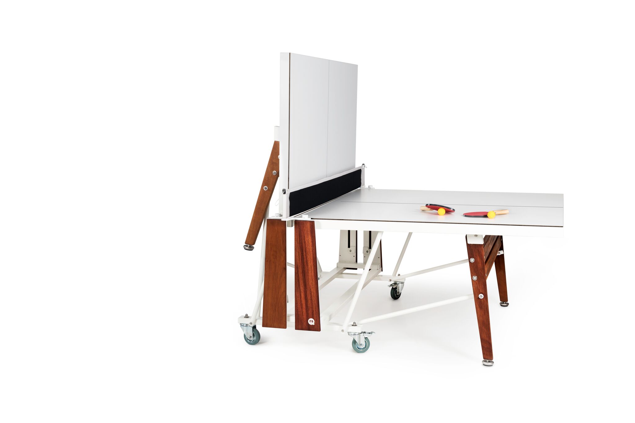 RS Barcelona is pushing the boundaries when it comes to outdoor ping pong tables with design features not seen in years here in the United States. All tables are custom made in Spain and their folding outdoor ping pong table is available in either a black or white playing surface. What makes these tables different? Well, first the design is unique and stylish compared to the average outdoor table tennis table. Modern design with classic colors make for a true conversation piece. We’ve seen these in cities like Los Angeles, Seattle, San Francisco, New York, London. Whether in homes or office meeting rooms, the RS Barcelona offers both functionality and performance. We like the color options as the only other all black top is from Killerspin and it’s a plastic aluminum top compared to the high pressure laminate that RS Barcelona does. Clean lines, great performance, and a classic outdoor ping pong table that will last for years. See the RS Barcelona Stationary table here.